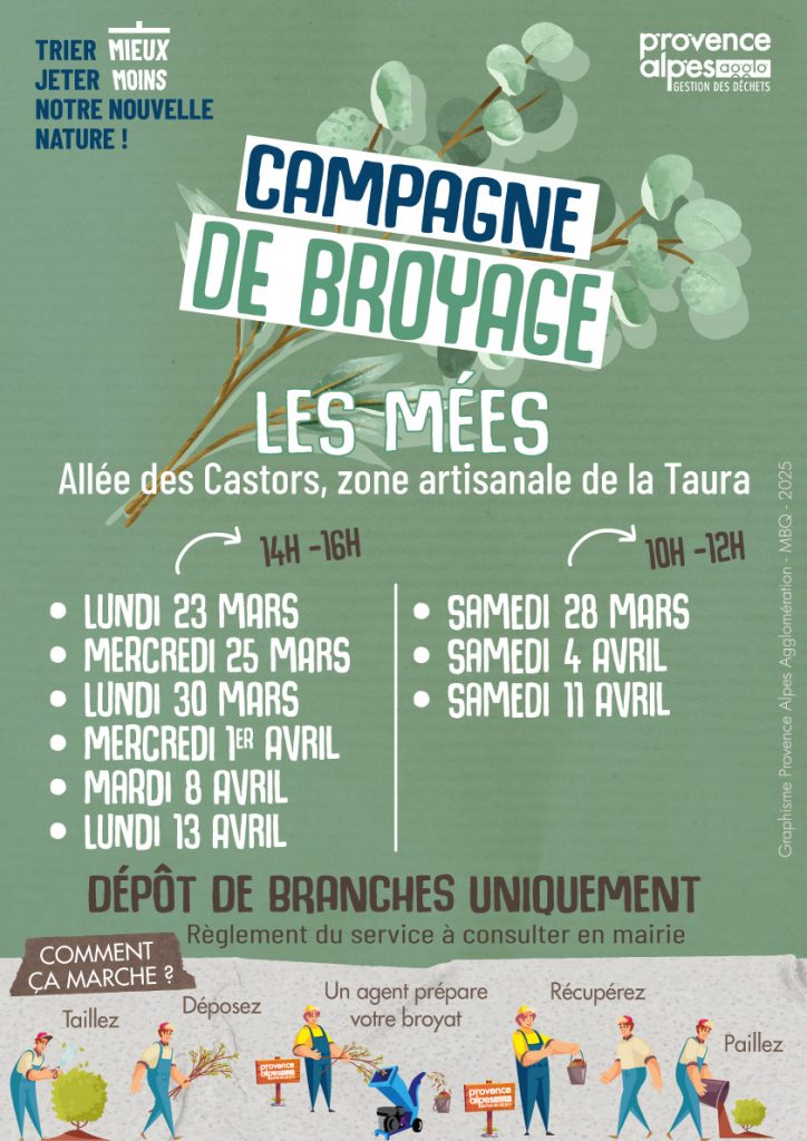 Les services de Provence Alpes Agglomération organisent une campagne de broyage sur la commune, du 23 mars au 13 avril