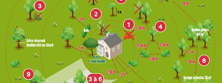 Il appartient au propriétaire de réaliser à sa charge le Débroussaillement autour de sa construction dans un rayon de 50 mètres, sans tenir compte des limites de propriété, en coordination avec ses voisins dans les cas de superpositions de leurs obligations respectives. Il doit également le réaliser aux abords des chemins d’accès privés, sur une largeur de 5 mètres de part et d’autre de la voie. En revanche, les parcelles classées en zone U, sont à débroussailler totalement même en l’absence de bâti. Pour effectuer vos OLD sur le terrain de votre voisin, il faut lui demander l’autorisation par courrier recommandé en l’informant des travaux prévus à vos frais et dates, les produits de coupes sont sa propriété (consulter cadastre en mairie pour connaître son identité) et en précisant que si refus ou non réponse, les OLD sont à sa charge (copie mairie).